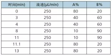 Phenomenex Luna C18 2.00×150 mm 3u或相當(dāng)梯度洗脫