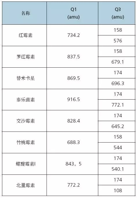 蜂蜜中大環(huán)內(nèi)酯類物質(zhì)的離子對(duì)信息