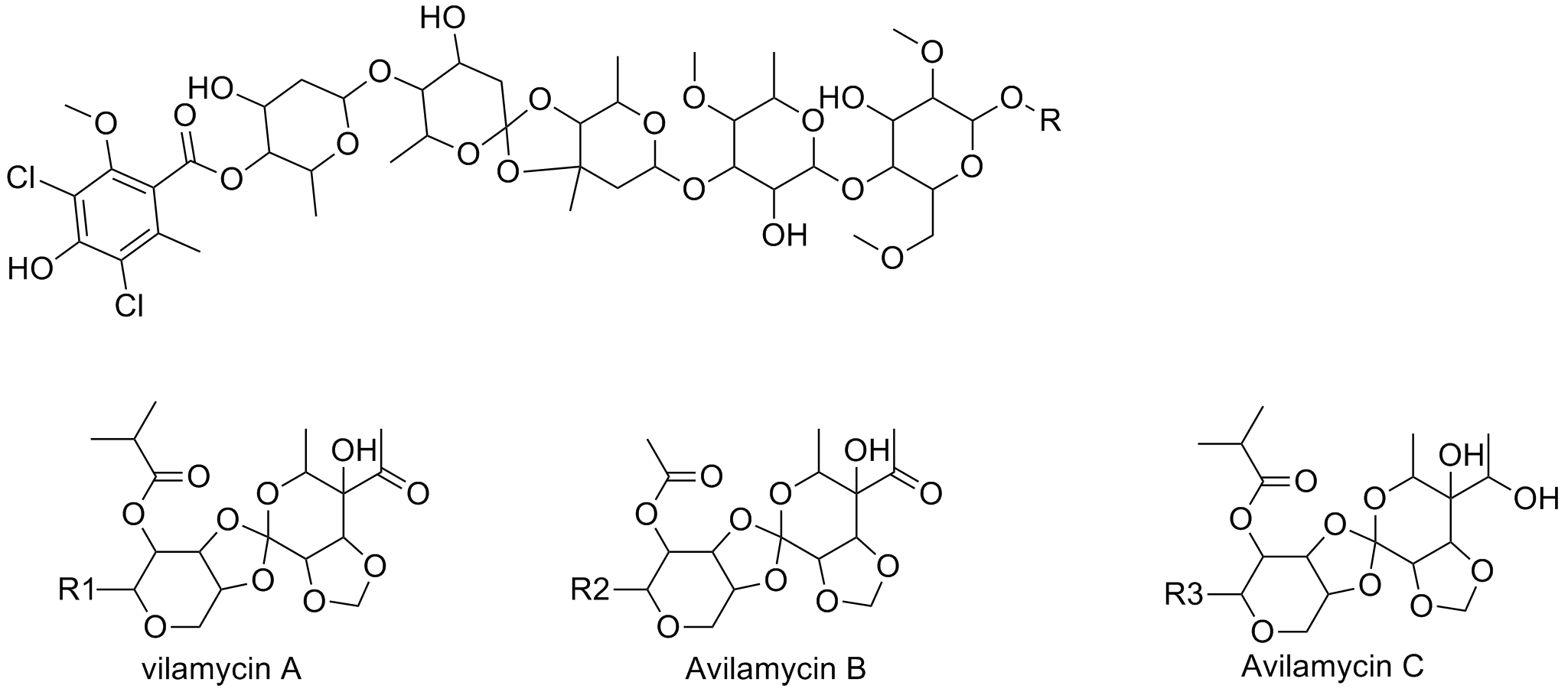 Avilamycin B(MF:C59H84Cl2O32; MW:1376.19; CAS#:73240-30-9